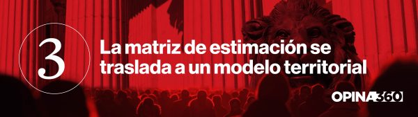 Una vez formulada la estimación, el resultado electoral se traslada a un modelo territorial que permite obtener un reparto de escaño por circunscripciones.